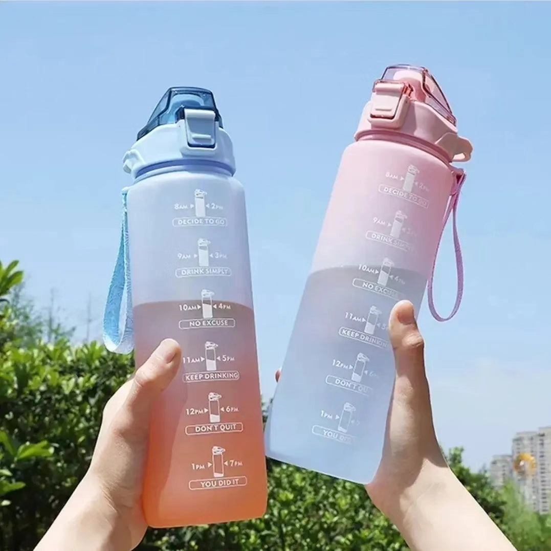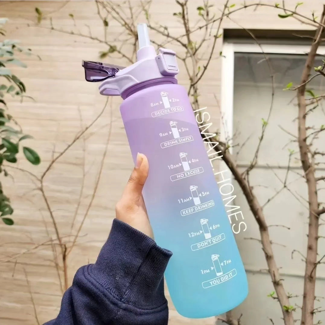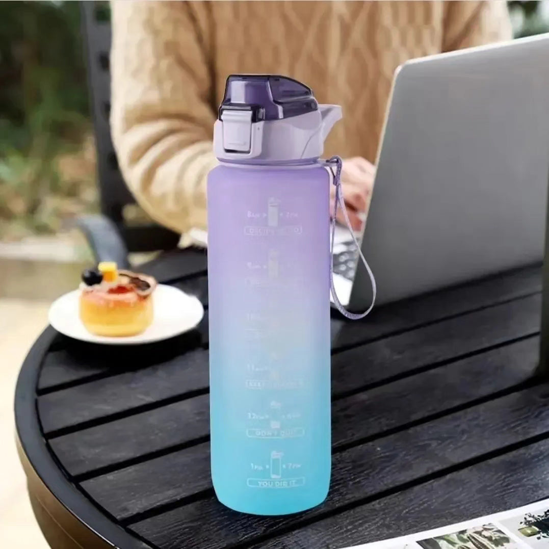 Experience convenient hydration with our 1000ML Gradient Bottle With Straw. Made from high quality BPA free plastic, it ensures safe and healthy drinking. With its large capacity and straw, stay hydrated on-the-go. *Note: Bottle may leak when upside down.