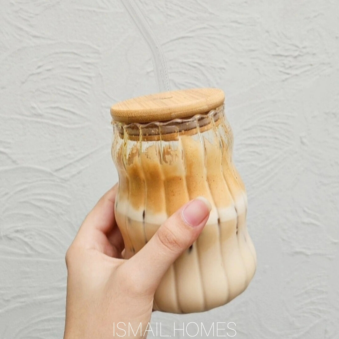 Experience elegance and sustainability with our 530ML Ripple Shaped Vintage Borosilicate Glass. This high-quality glass comes with a wooden lid and a glass straw, perfect for sipping your favorite drinks. Made from durable borosilicate glass, it's the perfect addition to your eco-friendly lifestyle.