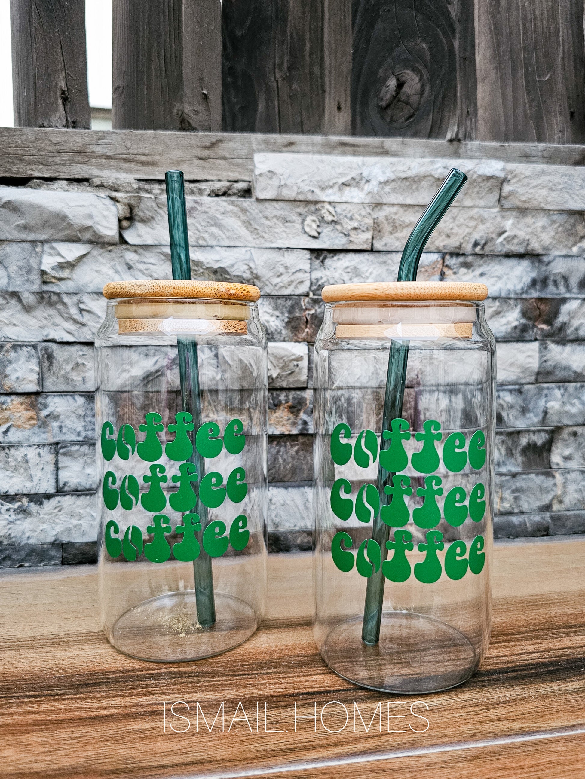 A glass container with a wooden lid and a glass straw is a stylish and eco-friendly drinkware option. The glass container is typically used for beverages like smoothies or iced drinks. The wooden lid adds a natural and rustic touch to the design while also providing a seal to keep your drink fresh. The glass straw is a reusable and sustainable alternative to plastic straws, making it an environmentally friendly choice. This combination is not only functional but also aesthetically pleasing.
