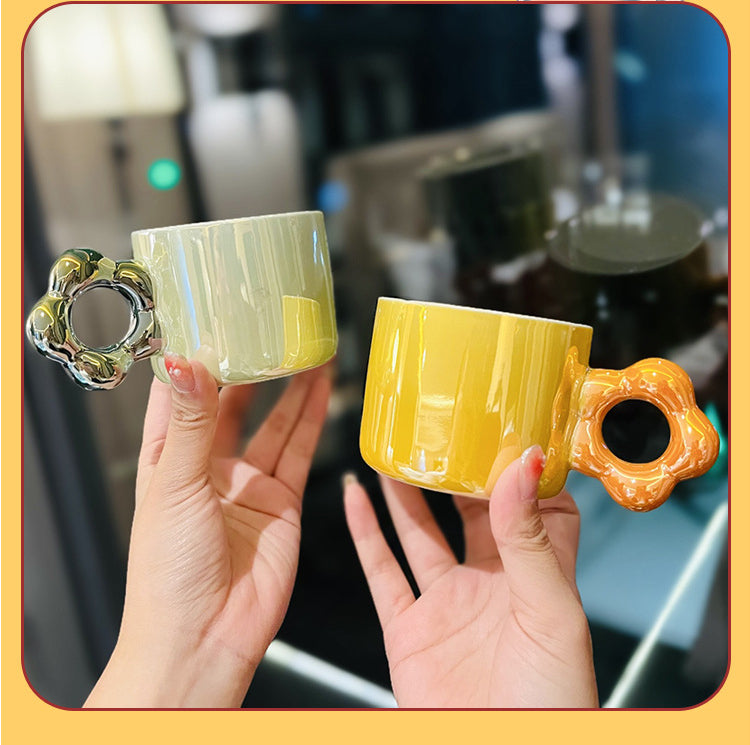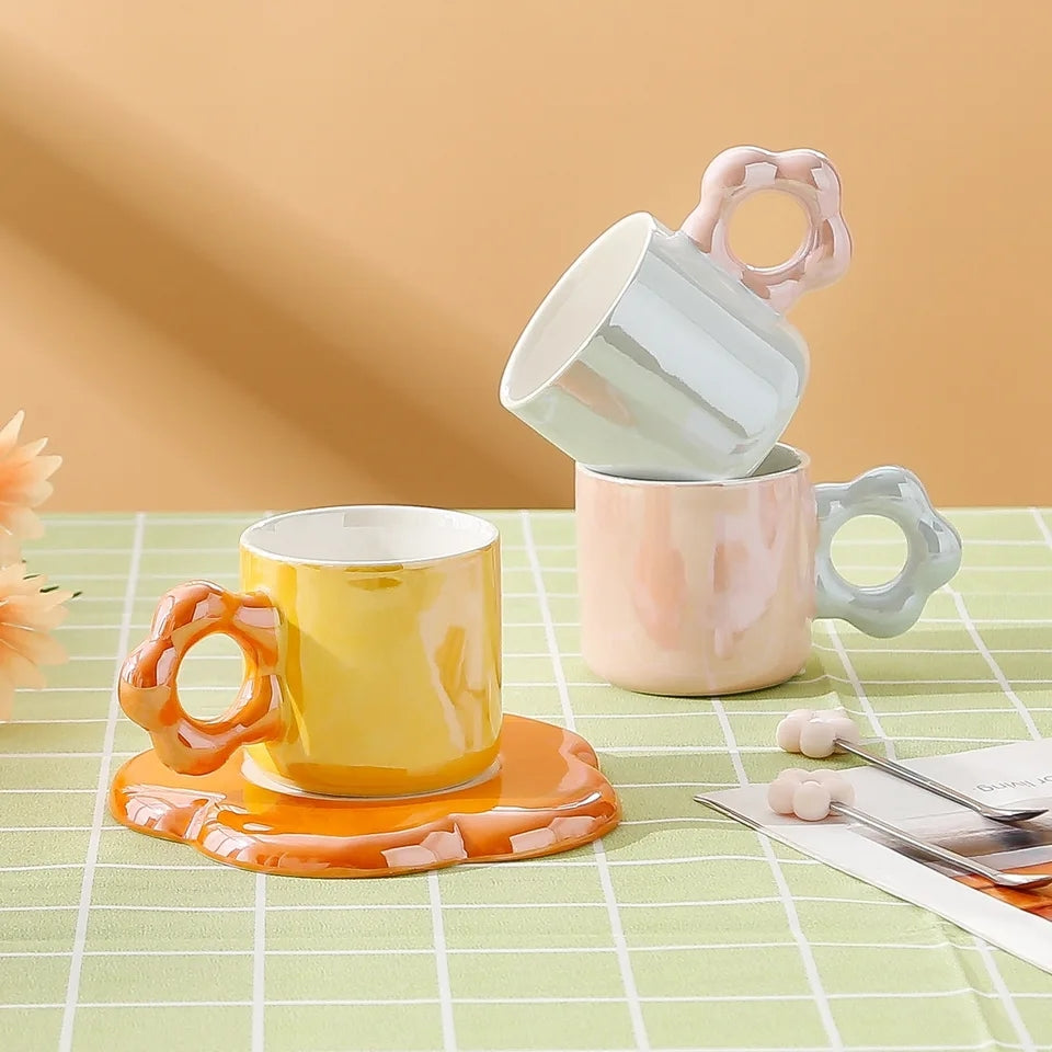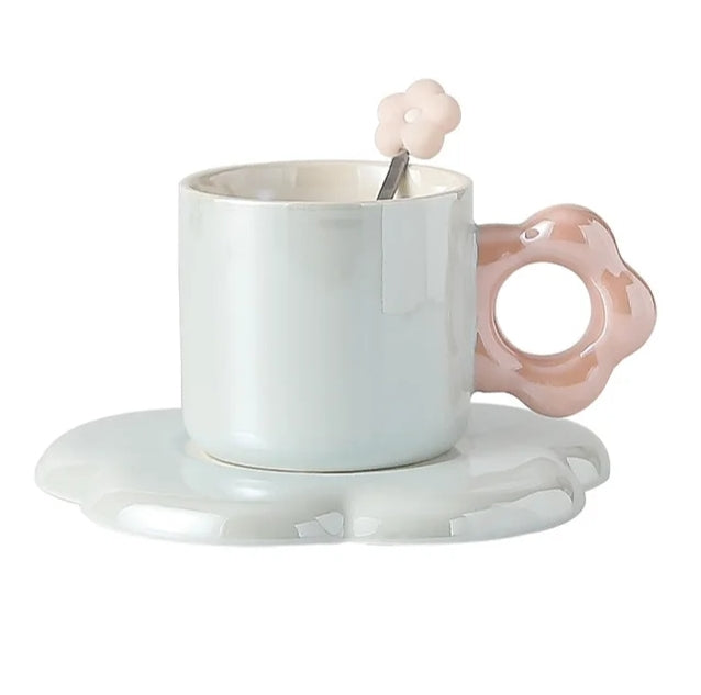 Pearl Glazed Mug with Flower Saucer and Spoon